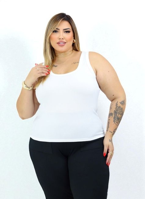 1. Quais são as cores disponíveis da regata malha canelada Plus Size?